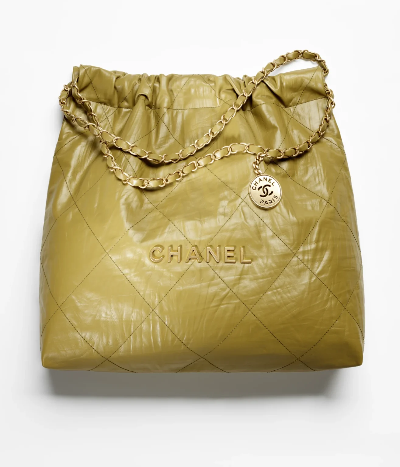 / CHANEL / CHANEL 22 HANDBAG Crumpled Calfskin & Gold-Tone Metal Green