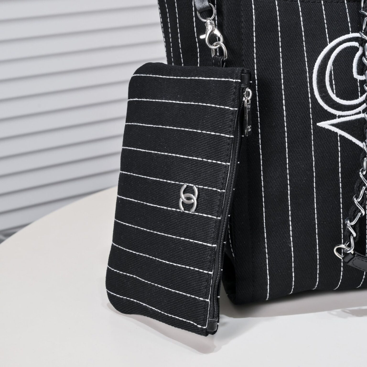 Chanel new beach bag denim bag Black with little wallet size: 48*38*30*14cm