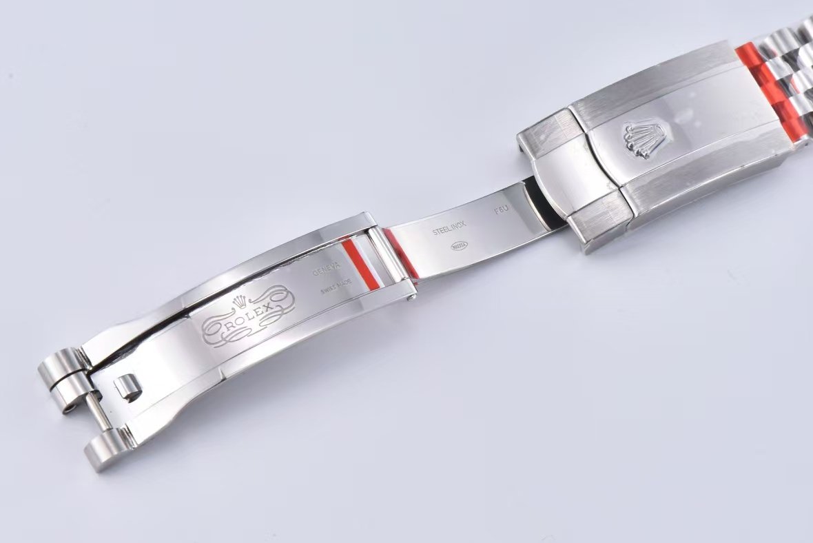The Datejust colour can be seen in green for a comparison of the genuine and the fake. The case and strap are still made of 904L steel.