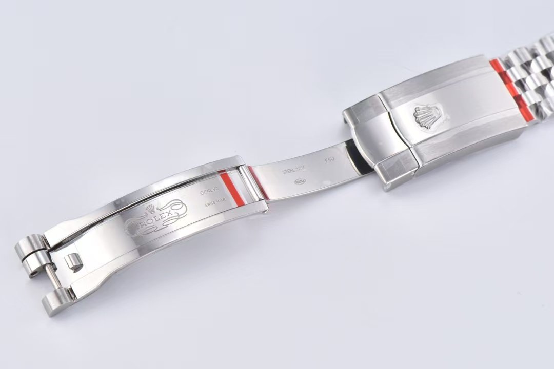 The Datejust colour can be seen in green for a comparison of the genuine and the fake. The case and strap are still made of 904L steel.