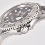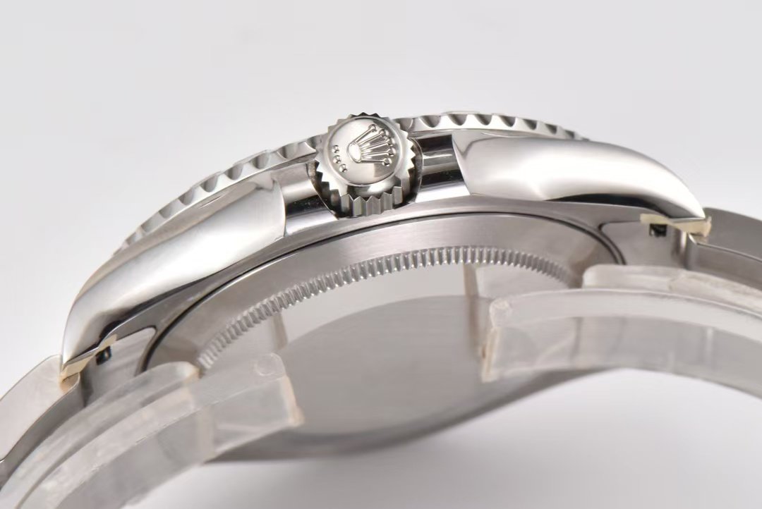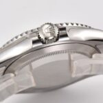 Case left and right sides of the curvature as well as the shape is basically 100% similarity, the same also uses 904L steel quality. Bottom cover part, bottom cover and case fit, the bottom of the case slightly bulging, which is also one of the characteristics of the yacht case put the head of the crown part of the stereoscopic, as well as the arc of the three three-point arrangement. Size, shape are done consistently. Special note, the yacht’s outer ring rotation feel, this time also and the real thing to do almost the same, bi-directional rotating bezel on top of the base, a circle of 120 small cells, every time you turn a little bit, you can feel a hint of frustration, not as hard as the water ghost, not qmt frustration so strong. This can only be realized. However, when you use it, you also need to pay attention to the rim because it is a frosted backing, so there may be scratches, this is unavoidable. The rims will also get dirty easily, just use hand sanitizer + soft bristle toothbrush to clean them.