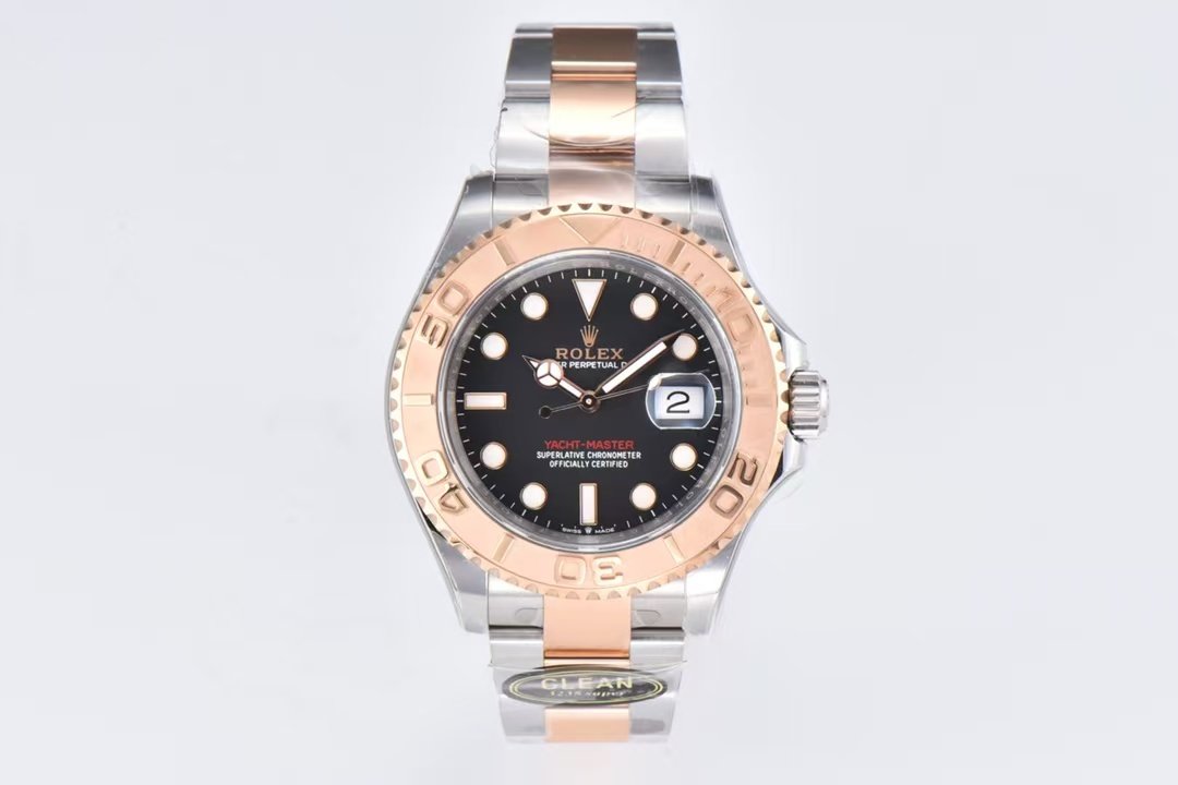 (clean)Rolex Yacht Master Interlocking Rose Gold Black Dial 40mm(12621)