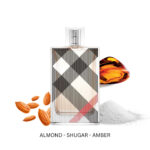 Burberry Brit For Her. A candied floral fragrance. sensual and addictive. Crisp. icy pear. sugared almond. and intense vanilla.