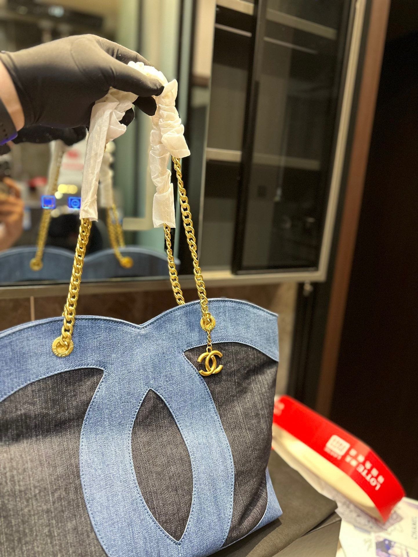 Chanel ramie cotton denim shopping bag beach bag size: 33* 32cm