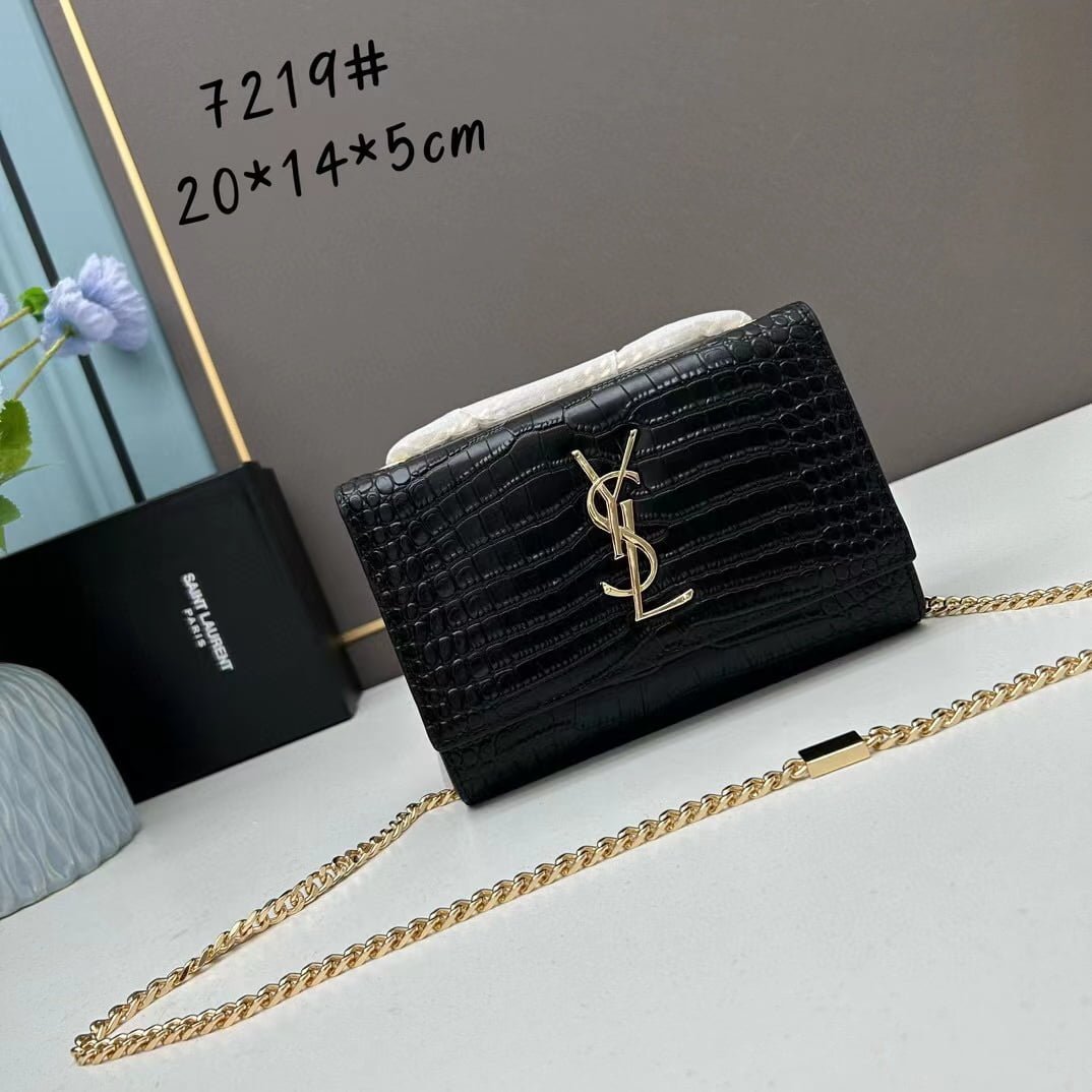 YSL Kat crocodile chain strap shoulder bag with gold hardware 7219 black size: 20*14*5cm/24*15*6cm