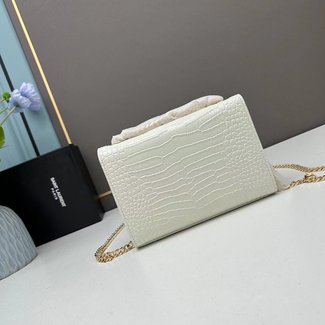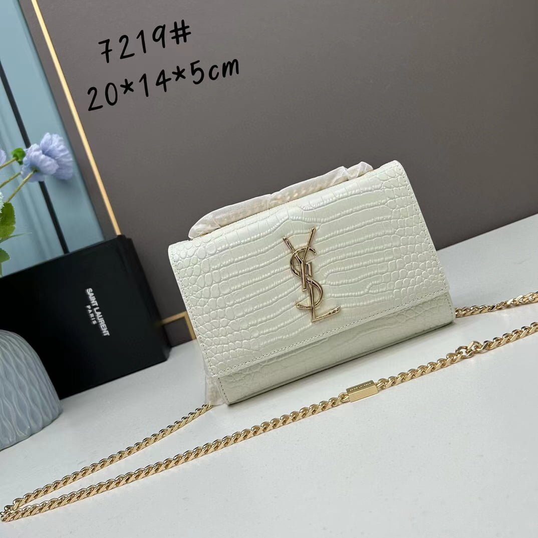 YSL Kat crocodile chain strap shoulder bag with gold hardware 7219 white size: 20*14*5cm/24*15*6cm