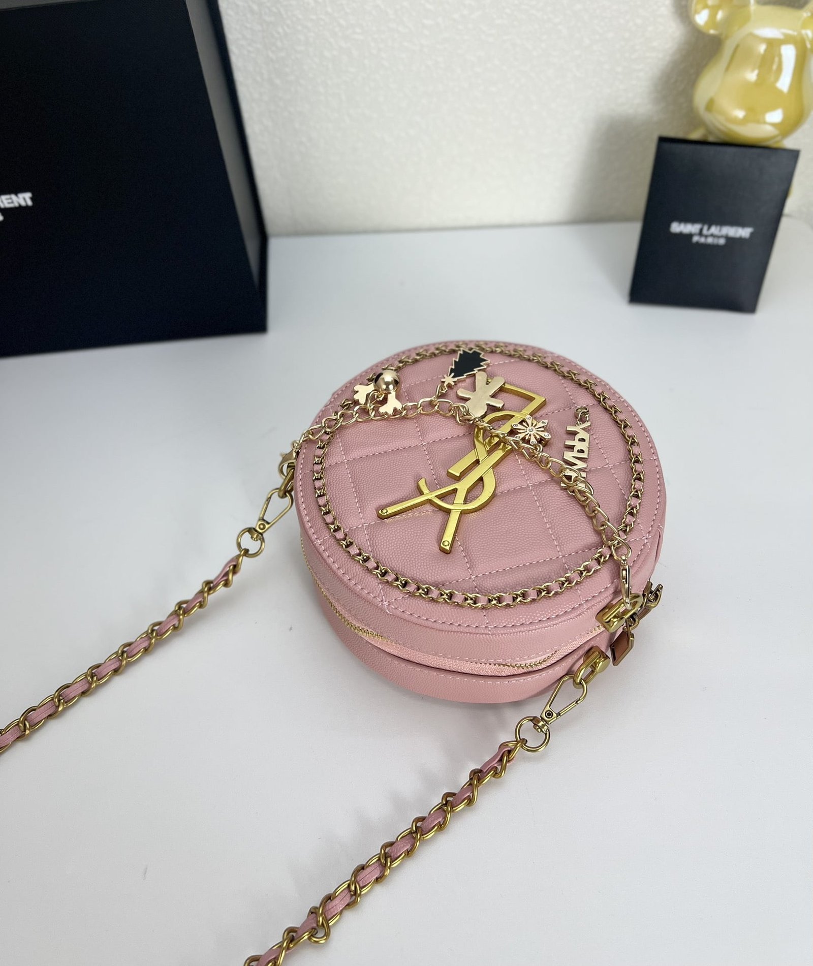 The combination of round cake bag and beautiful chain is really good to see the explosion network red with the same vintage hardware bag feel super delicate back to everything