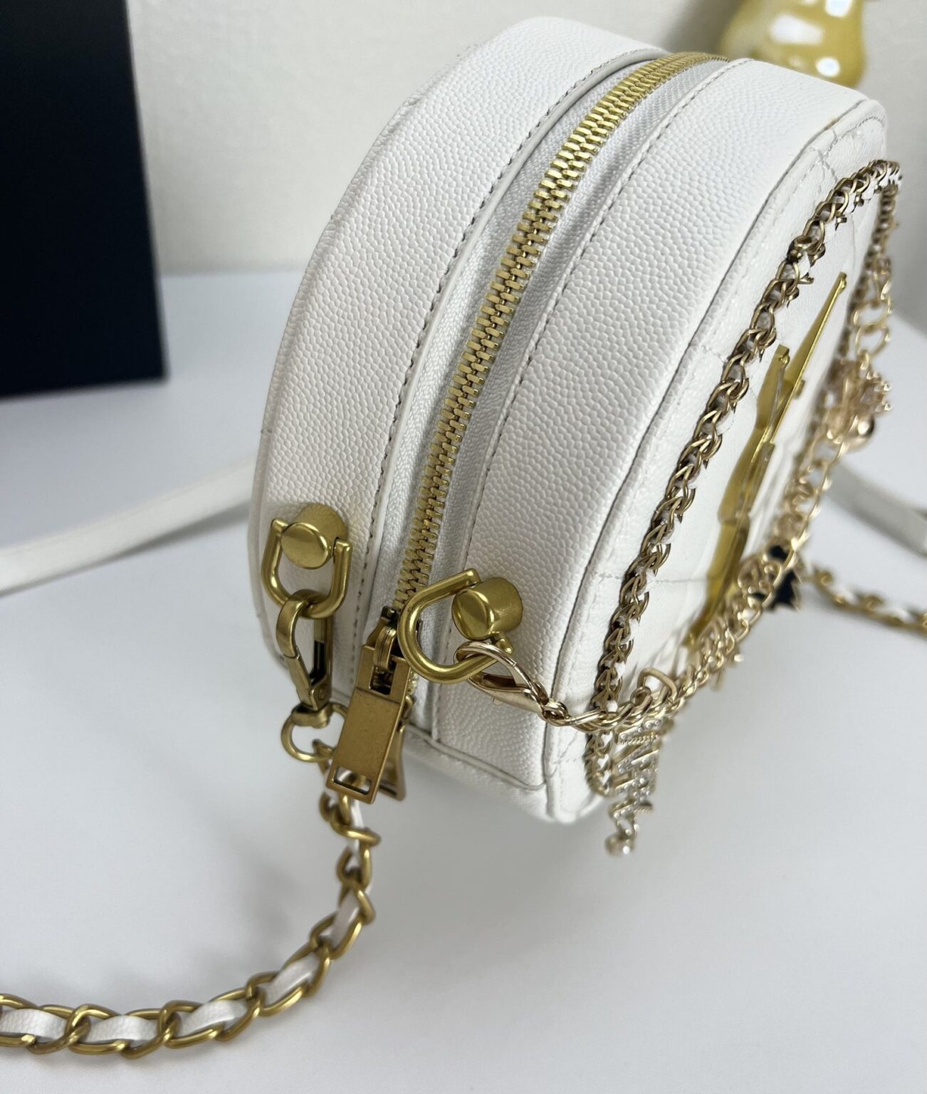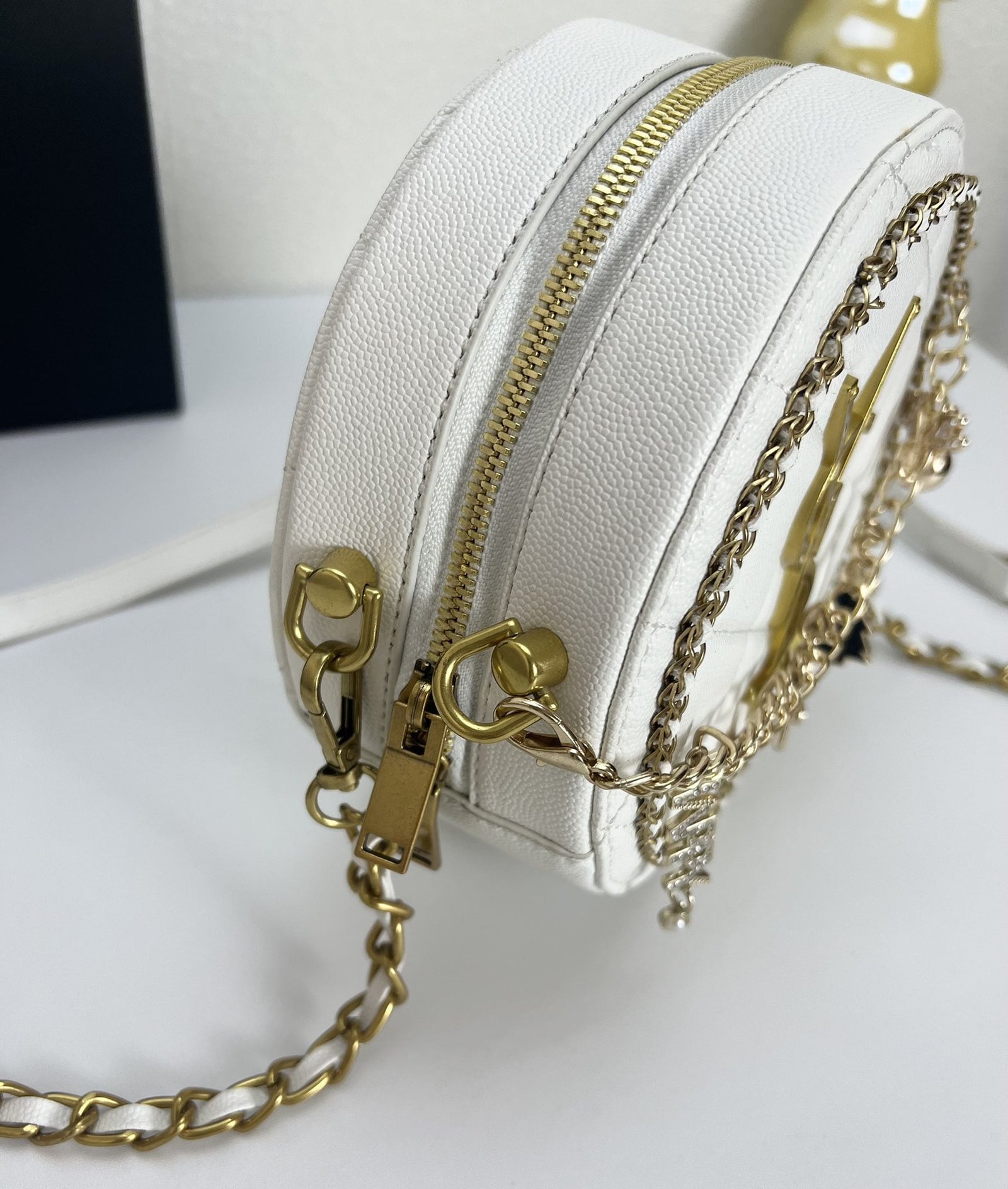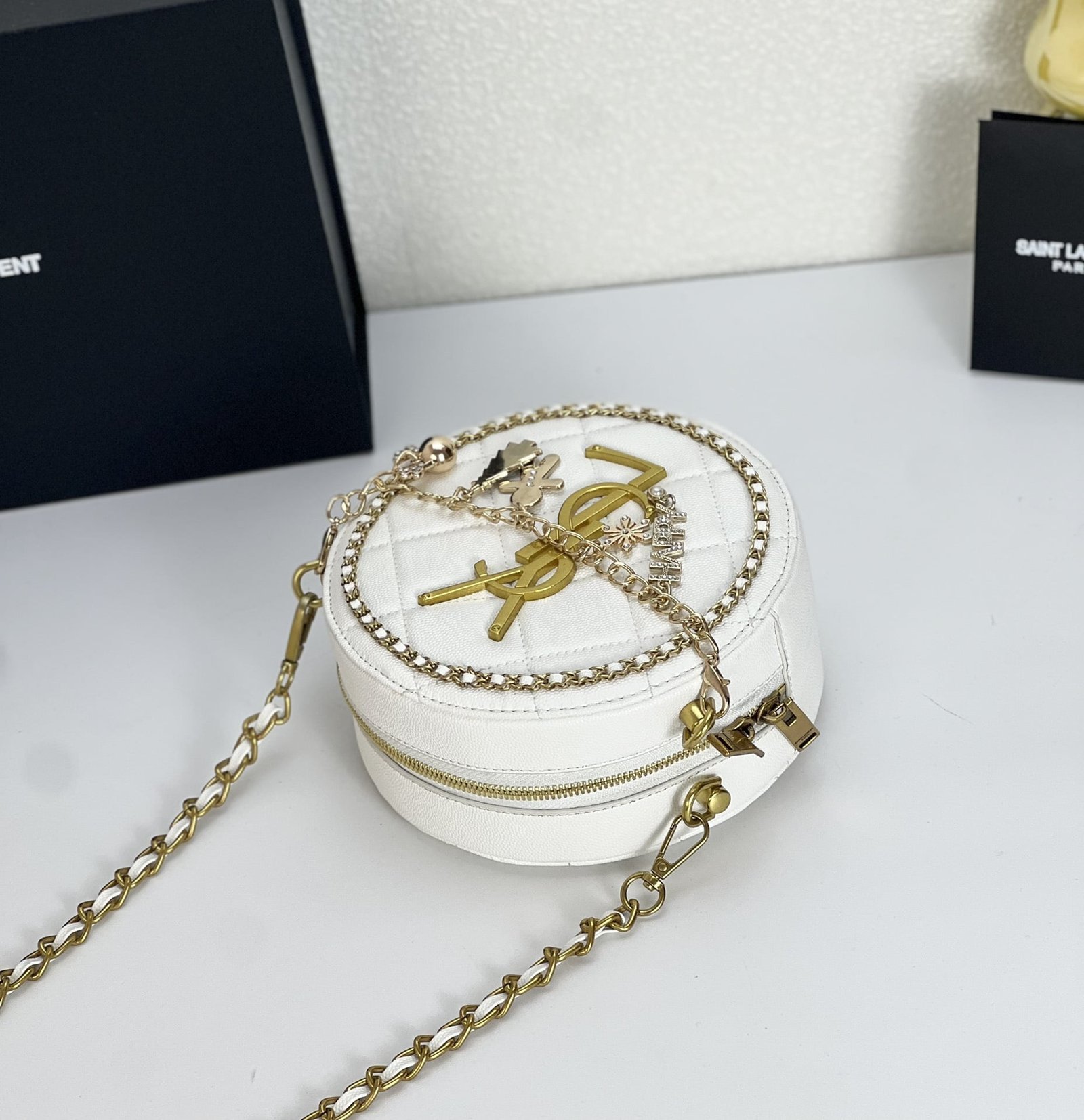 The combination of round cake bag and beautiful chain is really good to see the explosion network red with the same vintage hardware bag feel super delicate back to everything