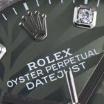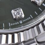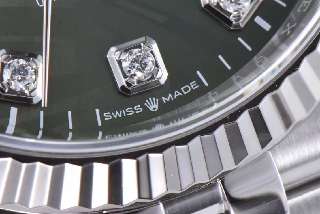 The Datejust colour can be seen in green for a comparison of the genuine and the fake. The case and strap are still made of 904L steel.