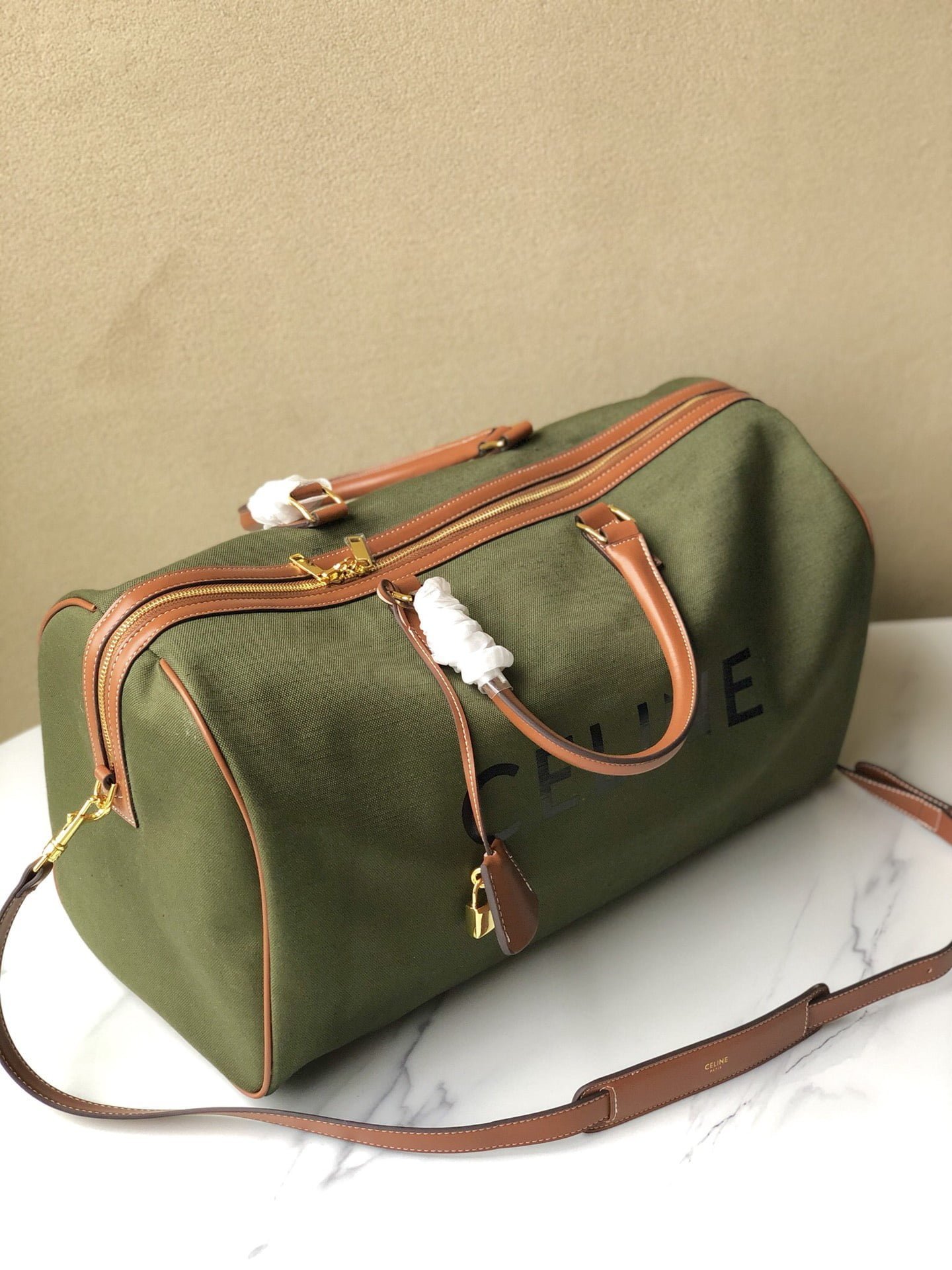 The new CELINE travel bag 🧳 Model No. 8029, canvas green, VOYAGE TRIOMPHE Canvas large 20 X 11 X 9 inches (50 X 28 X 22.5 cm)