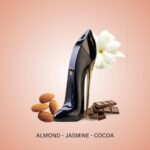 The stylish Good Girl Carolina Herrera for women contains top notes of Almond. Bergamot. Coffee. and Lemon. following the heart notes of jasmine. Tuberose. and Orange Blossom velvety almonds. The base notes are a lovely mixture of cocoa. vanilla. amber. sandalwood. patchouli. and Tonka Bean. Jasmine and tuberose give a sensual touch to this fragrance. and the dark cocoa further adds perfection.