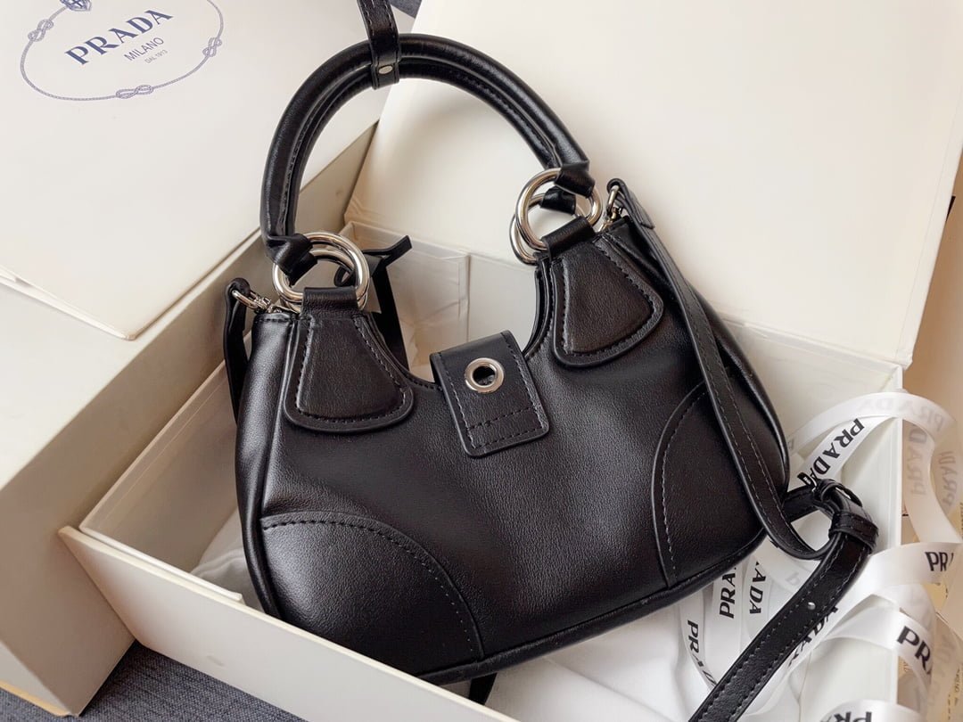 Prada leather Underarm bag black 1BA381 size: 22.5cm