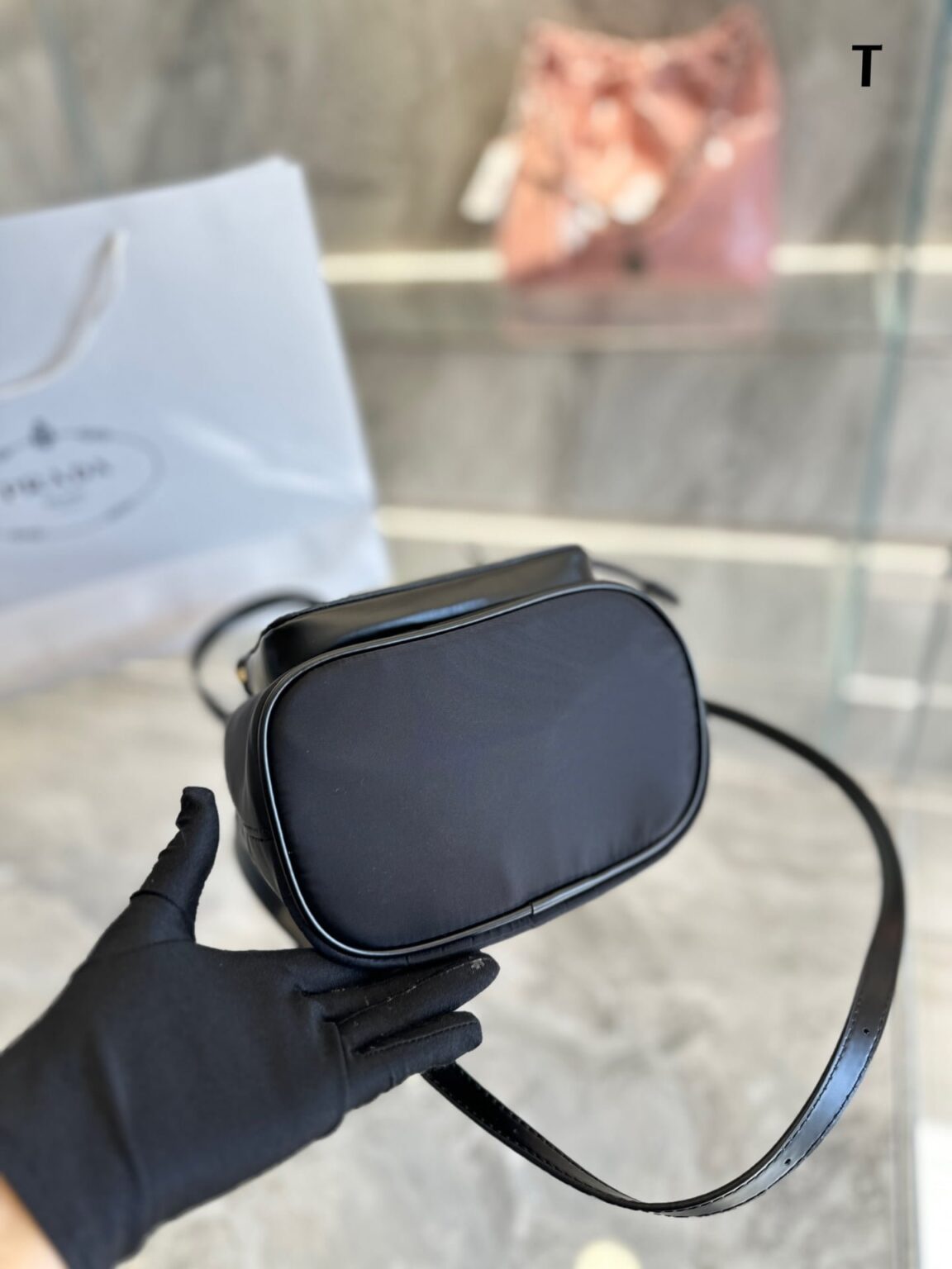 Prada autumn and winter new drawstring bucket bag, – consistent style, the use of high-grade nylon waterproof fabric strong and strong anti-wear anti-scratch, the iconic triangle enamel