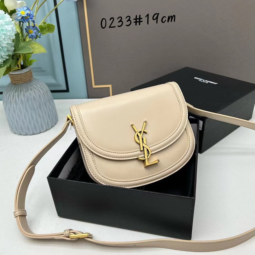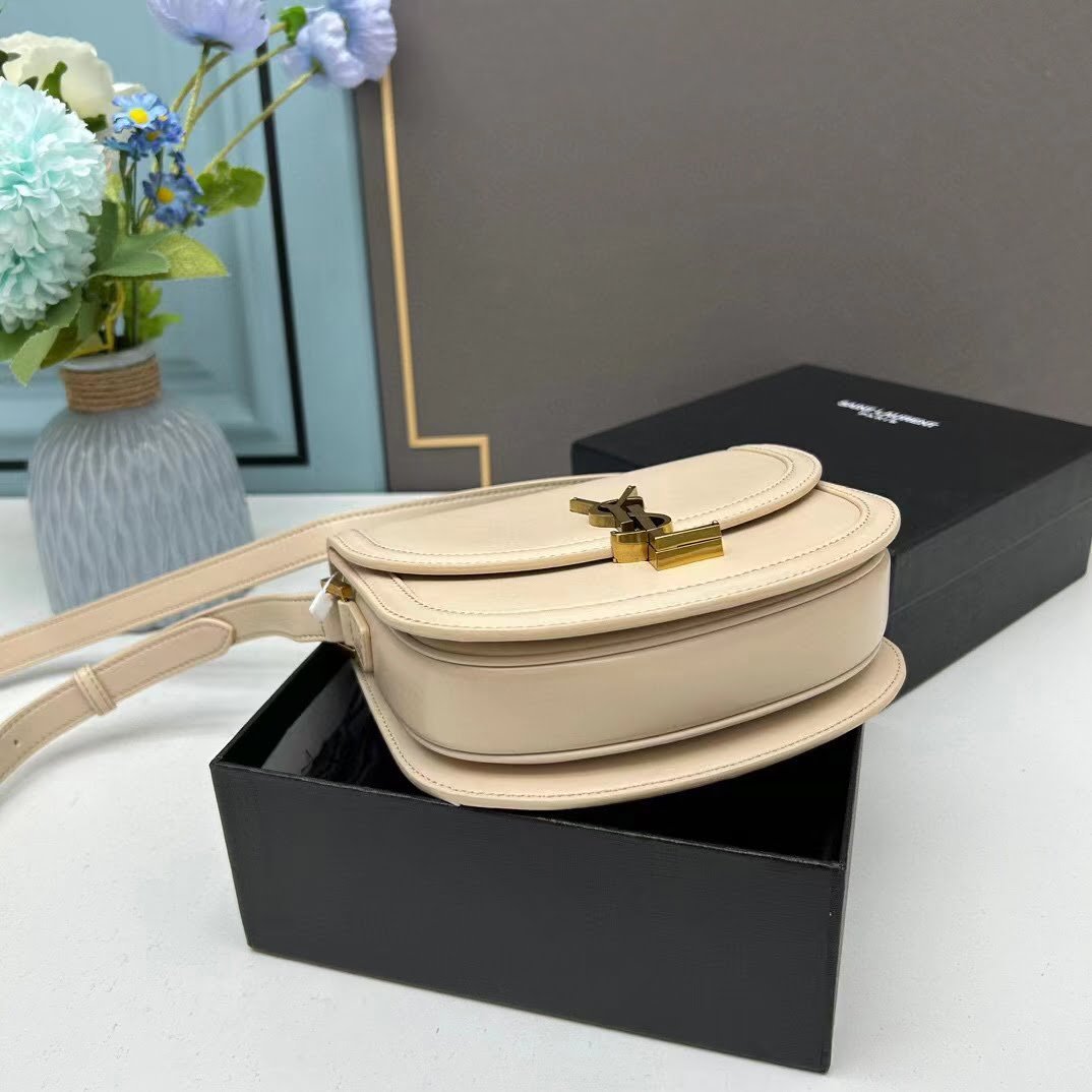 YSL saddle cowhide leather shoulder bag 0233 apricot size: 19*16*6cm
