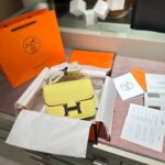 Hermès Constance Swift cowhide leather Sliver Hardware Yellow size: 19cm
