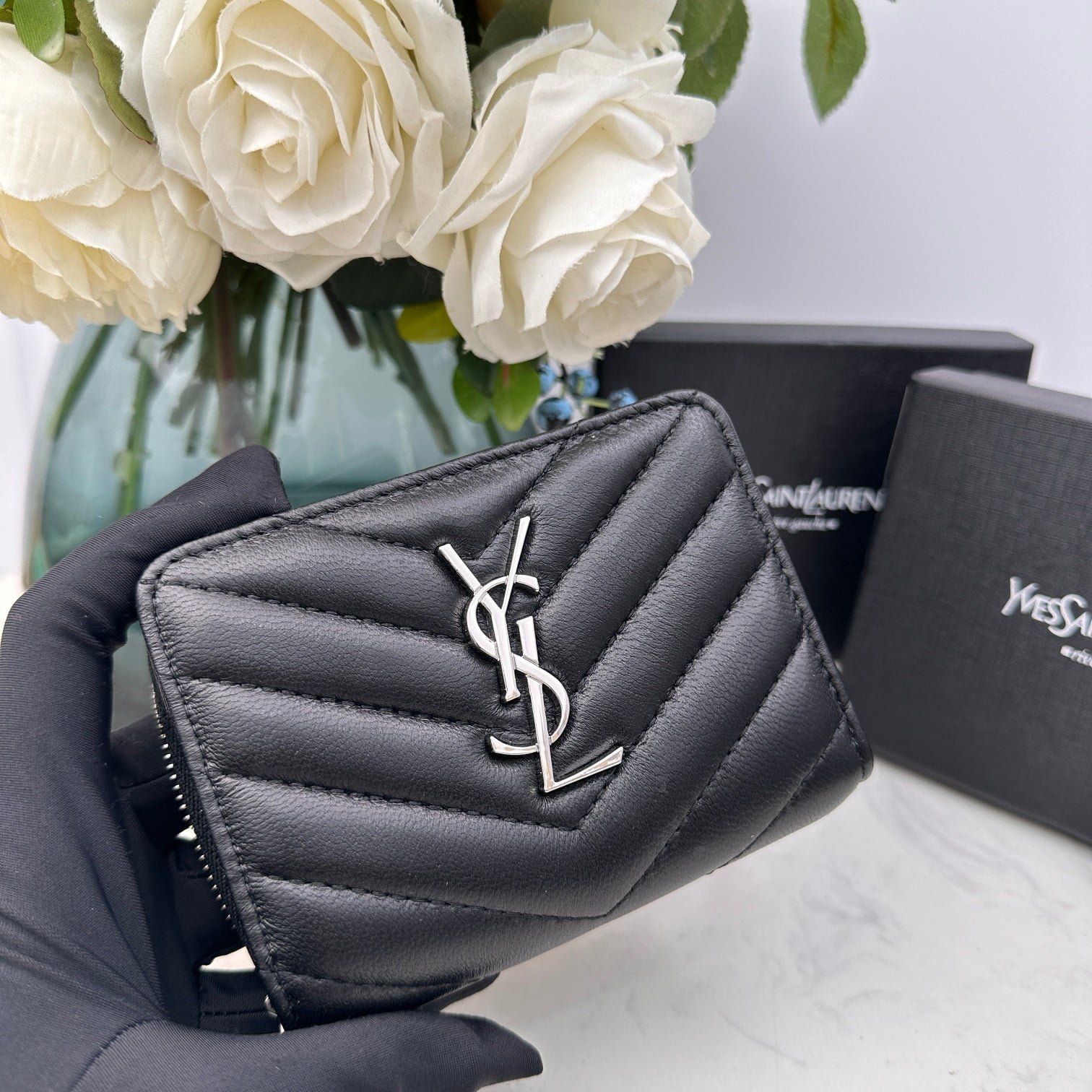 YSL SLP короткая круглая молния зажим для денег кошелек 1890 размер: 12*10*3CM